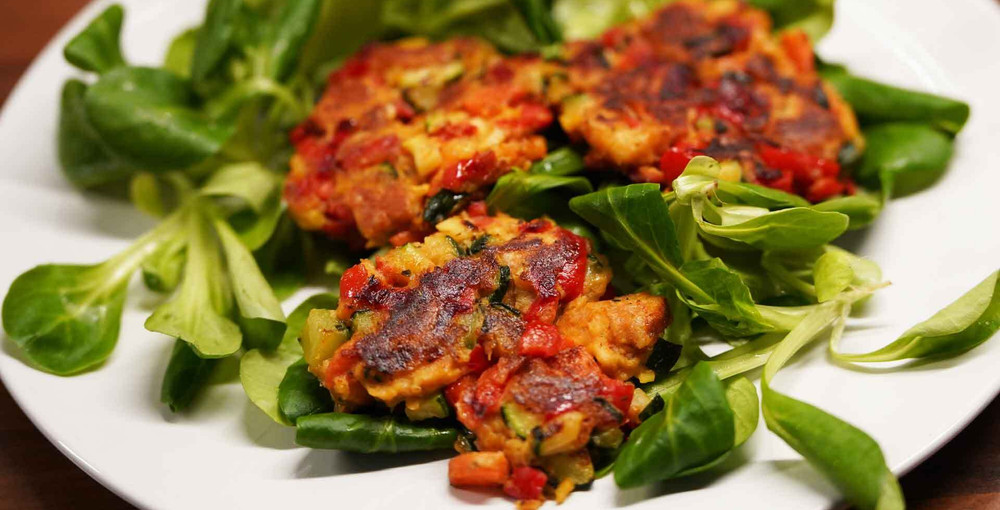 Die Gemüseknödel schmecken sehr gut auf einem grünen Salat als Topping. Hier findest du Inspirationen für den Salat: