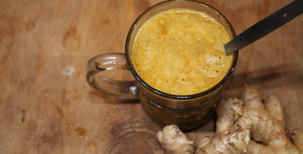 - Ähnlich wie bei goldener Milch kannst du deinem Ingwer-Shot etwas frischen Kurkuma, etwas frisch gemahlenen schwarzen Pfeffer und einen Teelöffel Kokosöl hinzufügen.