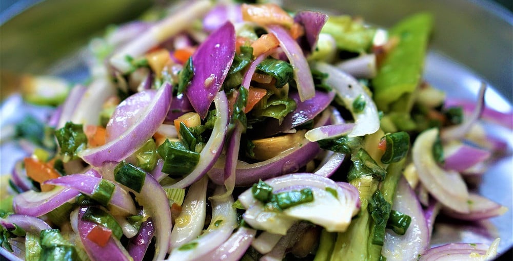 VeganDen veganen indischen Salat Kachumber (Aussprache ka-tschum-bar, vom Gujarati-Wort „kacumbar“) zeichnet aus, dass er ganz ohne Öl auskommt. Das heißt, er hat kein klassisches Salatdressing. Stattdessen wird das Gemüse einfach direkt mit Kräutern und weiteren Gewürzen vermischt. Das macht Kachumber zu einem sehr leichten Gericht, das sich auch gut als Beilage eignet, beispielsweise beim Grillen. Du kannst den Salat außerdem gut zu anderen indischen Gerichten servieren, probiere mal die Kombination mit einem Dal oder Samosas.
