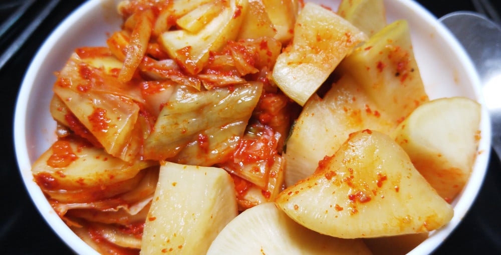 - Wenn du gerne rohe Zwiebeln magst, kannst du diesen im Kimchi-Salat verwenden. Es eignen sich sowohl normale Zwiebeln als auch Frühlingszwiebeln.