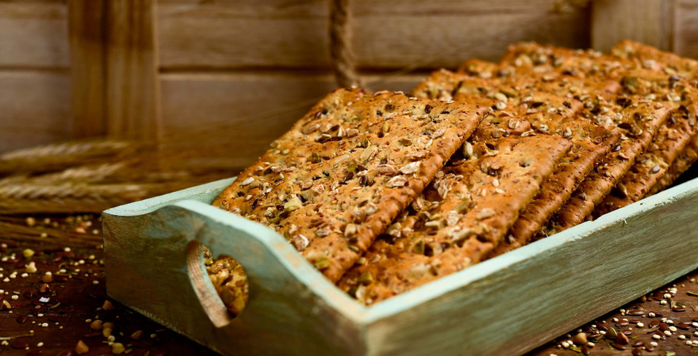 VeganCracker gibt es in zahlreichen Varianten – klassisch mit Weizenmehl und Salz, verfeinert mit Kräutern und Gewürzen oder zum Beispiel als leckere Pizza-Cracker. Für besonders viel Biss sorgen Kerne und Saaten als Cracker-Belag. Noch dazu liefern sie viele Ballaststoffe und pflanzliches Eiweiß.