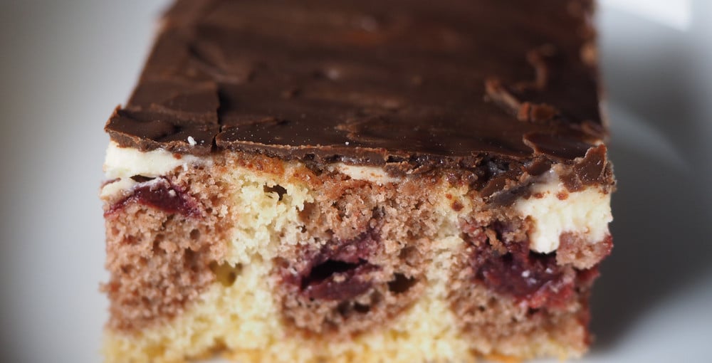 VeganDie Donauwelle wird zwar gebacken wie ein Blechkuchen, zählt streng genommen aber zu den Torten, weil sie aus mehreren Schichten besteht: Über dem gebackenen Teig mit Kirschen liegen noch eine Vanillecreme und ein Schokoladenguss. (Mehr Details zu den Unterschieden zwischen Kuchen und Torten kannst du übrigens in diesem Artikel nachlesen: Kuchen vs. Torte: Das ist der Unterschied.)